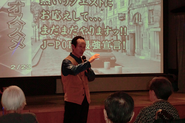マイクを持って、昔懐かしい歌を