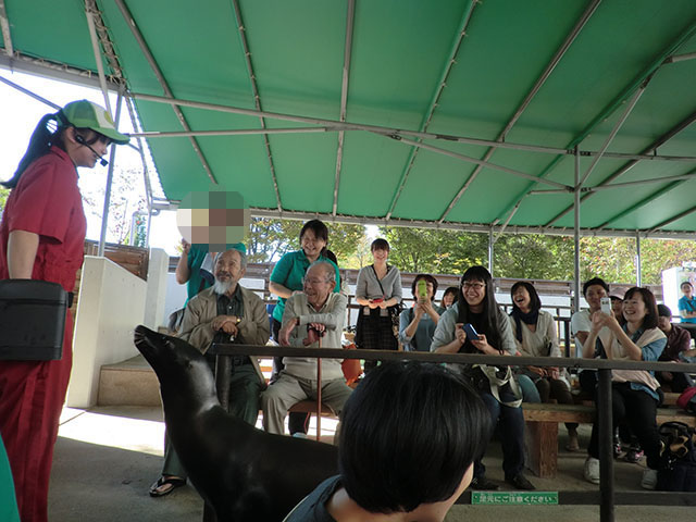 アシカショーでは、目の前まで来てからの