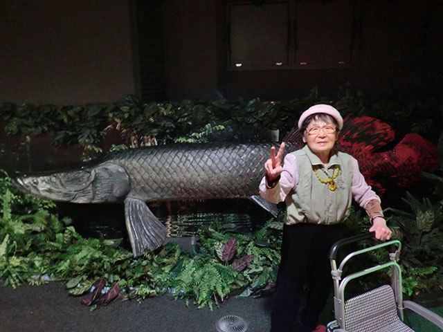 ピラルクと観覧車をバックに記念撮影!(^^)!