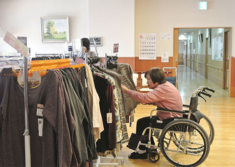 入居者様の中には買い物に出かけるのが難しい方もいらっしゃるのですが、訪問販売は施設内にお店を開いて頂けるので、自分の目で見て、好きなものを選んで購入できるため好評です。